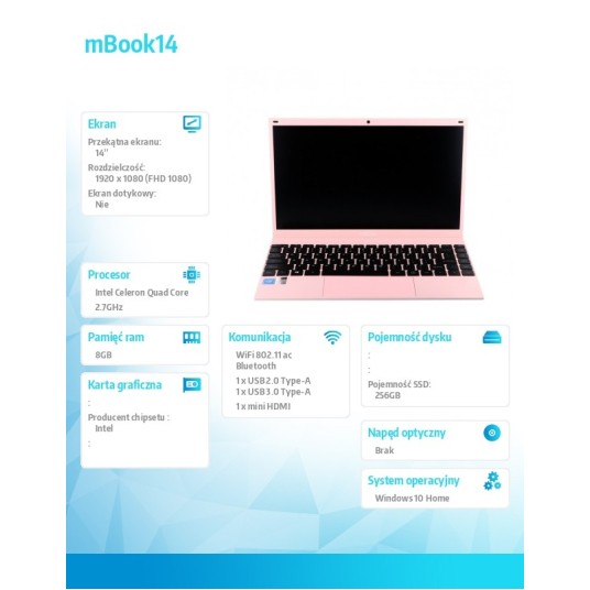 Potrzebujesz sprzętu do produktywnej pracy lub szkoły? Smukły i lekki laptop Maxcom mBook14 z wydajnymi podzespołami: kamerą 2 Mpx do wideokonferencji, dyskiem SSD oraz matowym ekranem FullHD sprzyja efektywnej pracy.