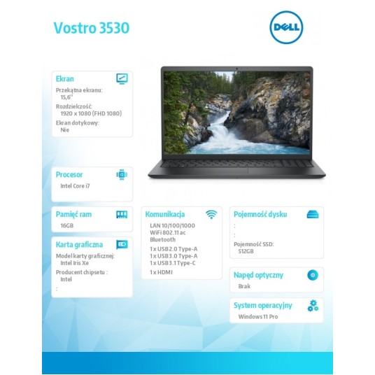 Opis dotyczy serii notebooków Vostro 3530. Rzeczywiste cechy mogą się różnić w zależności od konfiguracji notebooka.