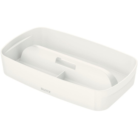 Organizer Leitz MyBox, z systemem modułowego ustawiania, stwarza możliwość eleganckiego przechowywania akcesoriów w domu lub biurze. Wykonany jest z wytrzymałego tworzywa o najwyższej jakości z błyszczącym wykończeniem. Pasuje do dużych i małych pojemników Leitz MyBox. Można w nim bezpiecznie przechowywać żywność zarządzając odpowiednio zawartością. Można go także używać bez pojemnika.