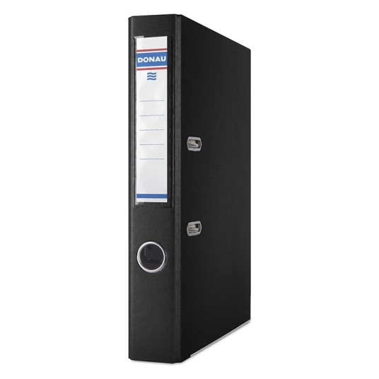 najwyższej jakości segregator wykonany z tektury o grubości 2,1mm i gramaturze 1290gsm, wyposażony w dolną listwę wzmacniającą posiada Zielony Punkt (Der Grüne Punkt) - udział w systemie recyklingu i odzysku odpadów wynikający z przepisów prawa polskiego i UE pokryty obustronnie ekologiczną folią polipropylenową (100µm) o strukturze płótna dźwignia wysokiej jakości z dociskaczem wymienna, obustronna etykieta grzbietowa wzmocniony otwór na palec metalowa listwa wzmacniajac, metalowa dźwignia, mechanizm, okucia i otwór na palec niklowane pod mechanizmem dźwigniowym umieszczony jest numer kontrolny szerokość grzbietu: 50mm wymiary: 50x320x285mm 2 lata gwarancji na mechanizm kolor czarny