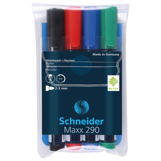 z końcówką okrągłą użyte na tablicy ścierają się z wyjątkową łatwością, na flipcharcie nie przebijają innowacyjna końcówka umożliwia przyjemne, ciche pisanie bez charakterystycznego odgłosu skrzypienia zwiększone dawkowanie tuszu polepsza wyrazistość i intensywność barw szybkoschnący, bezzapachowy, nietoksyczny - bez dodatku ksylenu i toluenu nie zasycha pozostawiony bez skuwki nawet przez 2-3 dni proekologiczne uzupełnienie tuszu za pomocą stacji napełniającej Maxx 655 (kolor czarny): napełnienie przywraca pełną gotowość do pracy i całkowicie eliminuje potrzebę zakupu nowego markera, tym samym redukuje ilość odpadów skuwka z praktycznym klipem elementy obudowy w kolorze tuszu kod kreskowy umieszczony na każdym produkcie grubość linii pisania: 2-3 mm zestaw w etui: 4 szt. miks kolorów