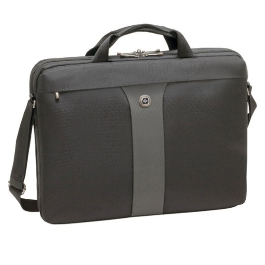 lekka cienka torba Legacy jest zarówno finezyjna, jak i funkcjonalna, ułatwiając przy tym przechodzenie przez kontrole bezpieczeństwa można w niej przenosić większość laptopów o rozmiarze 17"/43cm ułatwia kontrolę organizator na niezbędne akcesoria przegroda na dokumenty miękkie uchwyty pasek na ramię odporny na rozdarcia pasek Pass-Thru wsuwa się na system uchwytu bagażu na kółkach, ułatwiając dzięki temu podróżowanie waga: 0,87kg pojemność: 12L wymiary: 440x340x80mm materiał: poliester gwarancja: 3 lata kolor: czarny