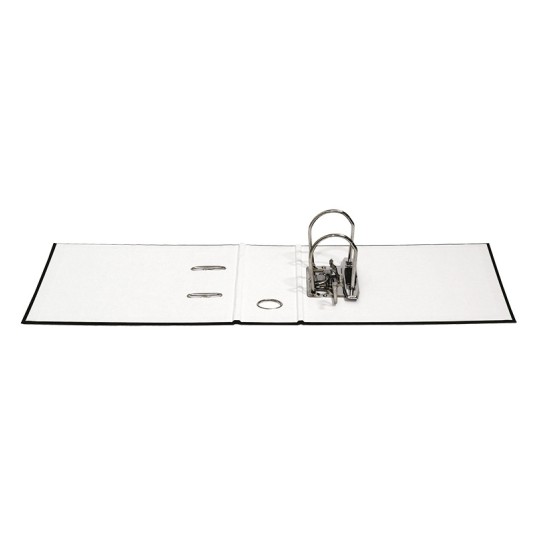 wykonany z tektury o grubości 2,1mm i gramaturze 1290gsm posiada Zielony Punkt (Der Grüne Punkt) - udział w systemie recyklingu i odzysku odpadów wynikający z przepisów prawa polskiego i UE pokryty ekologiczną folią PP (100µm) o strukturze płótna wewnątrz biała wyklejka papierowa dźwignia wysokiej jakości z dociskaczem wymienna, obustronna etykieta grzbietowa metalowa dźwignia, mechanizm i otwór na palec niklowane otwory w okładce na mechanizm dociskowy oraz otwór na palec wzmocnione metalowym okuciem pod mechanizmem dźwigniowym umieszczony jest numer kontrolny szerokość grzbietu: 75mm wymiary: 75x235x225mm 2 lata gwarancji na mechanizm kolor zielony