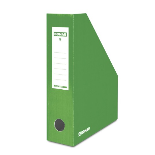 wykonany z lakierowanej trójwarstwowej tektury falistej o grubości 390gsm produkt bezkwasowy (pH ok. 7,5) szerokość grzbietu: 80mm pojemność: do 800 kartek o gramaturze 80gsm posiada wycięcie na palec ułatwiające wkładanie i zdejmowanie pojemnika z półki ściana grzbietowa dostosowana do opisu składany - bardzo prosty w montażu certyfikat FSC® gwarantuje, że surowiec potrzebny do produkcji wyrobu pochodzi z lasów zarządzanych w odpowiedzialny sposób; promuje on trwałą gospodarkę leśną opartą o najwyższe światowe standardy w dziedzinie ochrony przyrody i gwarantuje legalność pochodzenia surowca wymiary: 80x257x320mm kolor zielony