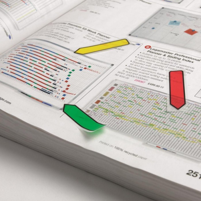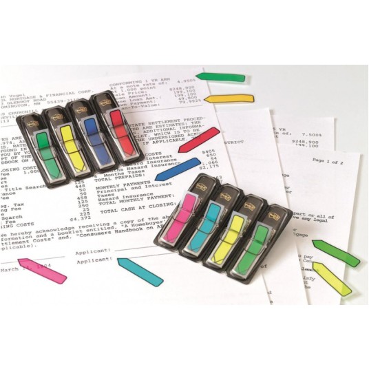 ilość zakładek: 4x24 w rozmiarze 11,9mm x 43,2mm wykonane z folii PP o grubości 63,5µm wskazują i ułatwiają wyszukiwanie ważnych informacji różnorodność kolorystyczna umożliwia podział dokumentów w segregatorach i teczkach można po nich pisać można je wielokrotnie przyklejać i odklejać nie niszcząc powierzchni mix kolorów (neonowy)
