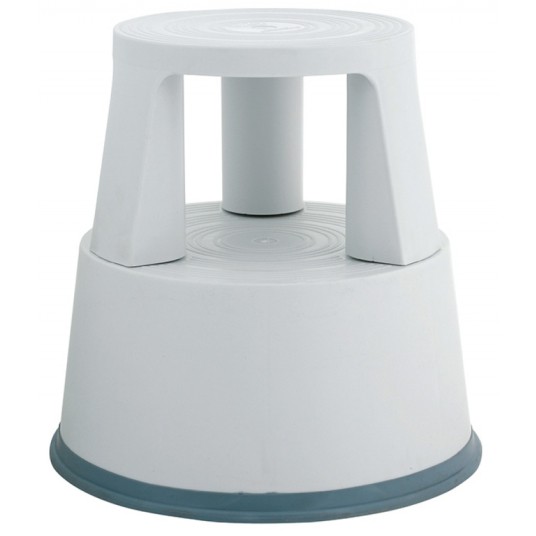 taboret biurowy, 2-stopniowy lekka plastikowa konstrukcja o wadze 2,9kg podnosi walory mobilności gwarantuje bezpieczeństwo i stabilność kółka chowają się w momencie obciążenia max. obciążenie do 150 kg wyposażony w 3 kółka średnica (góra): 295mm średnica (dół): 445mm wysokość: 430mm kolor: szary