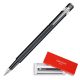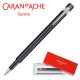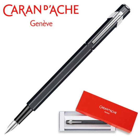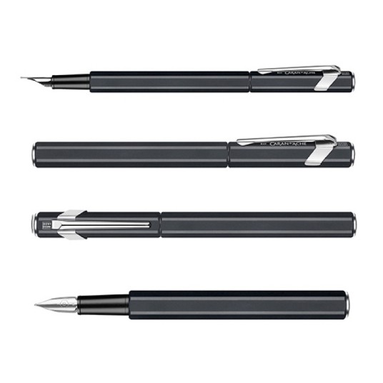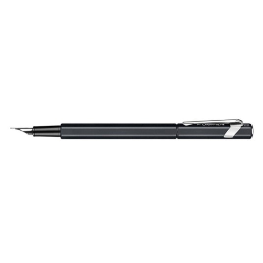 pióro wieczne szwajcarskiej marki Caran d’Ache z kultowej kolekcji 849, kolor czarny, stalówka M wykonane z aluminium o heksagonalnym kształcie, posiada elastyczny klips stalówka wykonana ze stali szlachetnej w rozmiarze M (średni) podwójny systemem napełniania posiada nabój atramentowy w kolorze niebieskim (Idyllic Blue) na start możliwość zamontowania konwertera umieszczone w eleganckim firmowym pudełku kolor: czarny