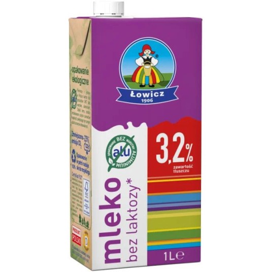 Mleko ŁOWICZ UHT 3,2% bez laktozy 1L