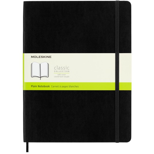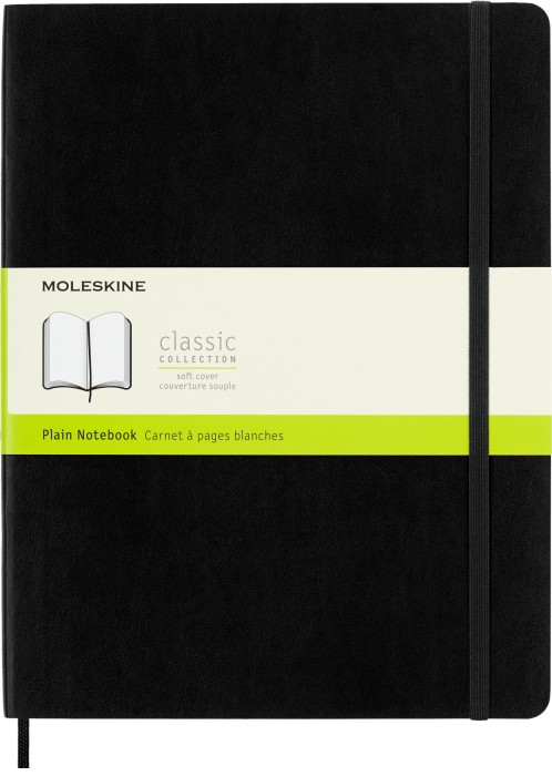 Notes Moleskine Classic XL (19x25cm) gładki, miękka oprawa, czarny, 192 strony Kolekcja notesów w różnych kolorach i wielkościach znana na całym świecie. Dostępna w miękkiej oprawie w bogatej kolorystyce dla wprowadzenia kolorów do dnia codziennego. Do produkcji został użyty standardowy bezkwasowy papier certyfikowany FSC® w kolorze kości słoniowej. Zrobiony z barwionej masy, doskonale nadaje się do zapisywania notatek długopisem oraz ołówkiem. Rozmiar: 19x25 cm Rodzaj: gładki Okładka: miękka Kolor: czarny Liczba stron: 192 Dodatkowo: zamykany na gumkę wstążkowa zakładka elastyczna kieszeń wewnątrz
