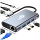 Współpracuje z praktycznie wszystkimi urządzeniami z portem USB C. Można za jego pomocą połączyć się z: smartfonem, projektorem, tabletem myszką, klawiaturą, monitorem, laptopem, dyskiem twardym, pendrivem, aparatem, dwoma monitorami. Nie wymaga instalacji oprogramowania. Port USB C umożliwia ładowanie urządzenia głównego, podczas gdy inne urządzenia peryferyjne są do niego podłączone. Aluminiowa obudowa zapobiega nagrzewaniu adaptera.