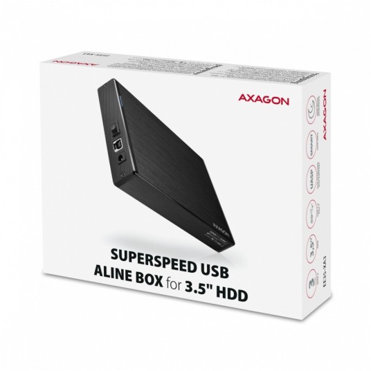 Kompaktowa aluminiowa obudowa zewnętrzna AXAGON EE35-XA3 ALINEbox z interfejsem szerokopasmowym USB 3.2 Gen 1 (USB 3.0) przeznaczona na dyski 3.5" SATA.