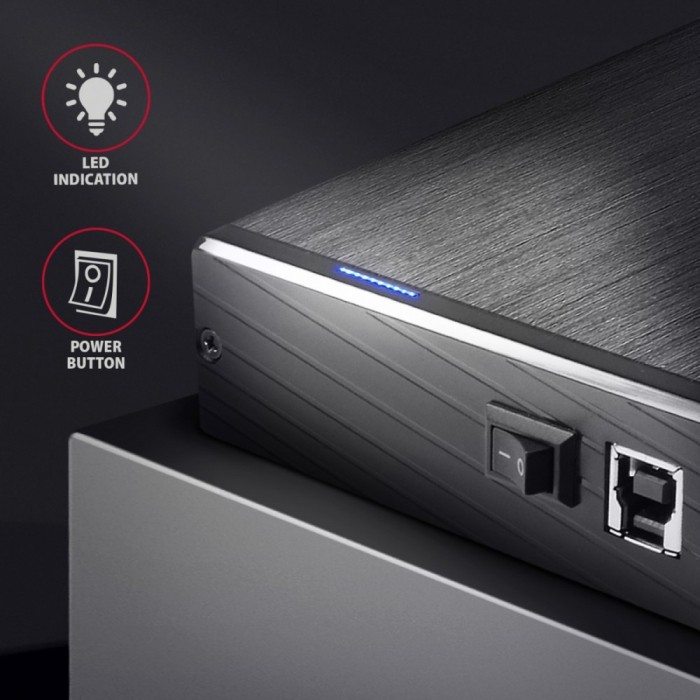 Wytrzymały odlew obudowy aluminiowej dla doskonałej ochrony mechanicznej dysku i wyśmienitego odprowadzania ciepła.