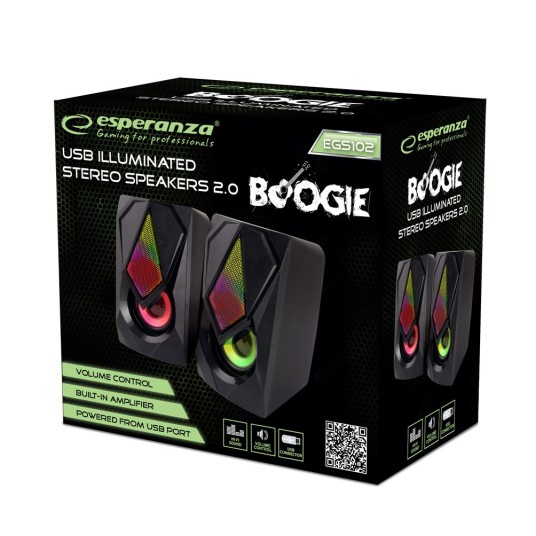 Wysokiej jakości stereofoniczne głośniki USB z podświetleniem LED RAINBOW. Do notebooków i komputerów stacjonarnych. Gwarantują czyste i naturalne brzmienie dźwięku. Współpracują ze wszystkimi komputerami posiadającymi wyjście głośnikowe i wyjście USB. Posiadają wbudowaną regulację głośności. Wysokiej jakości materiały użyte do produkcji zabezpieczają przed elektryzowaniem się i przed generowaniem zakłóceń elektromagnetycznych.