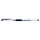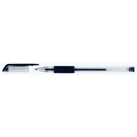 długopis żelowy z wymiennym wkładem zapewnia gładkie i płynne pisanie transparentna obudowa pozwalająca kontrolować stopień zużycia tuszu ergonomiczny gumowy uchwyt gwarantujący komfort pisania klips, nasadka i uchwyt w kolorze tuszu tusz pigmentowy, wodoodporny, nieblaknący, nietoksyczny na każdym długopisie kod EAN perforowane pudełko umożliwiające oderwanie górnej części i prezentację produktów średnica kulki: 0,5mm grubość linii pisania: 0,3mm kolor czarny