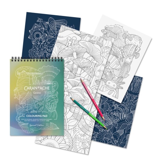 Kolorowanka szwajcarskiej marki Caran d’Ache z limitowanej kolekcji Claim Your Style edycja 5. Caran d'Ache przedstawia limitowaną kolekcję Claim Your Style w organicznych i opalizujących kolorach, bezpośrednio inspirowaną cudami natury. Piąta edycja kolekcji Claim Your Style zabiera nas w podróż do samego serca planety. Kolorowanka składa się z 20 rysunków szwajcarskiej artystki Ambre Verschaeve o tematyce ciekawostek natury. 14 białych arkuszy i 6 ciemnoniebieskich arkuszy do odkrywania i zaprezentowania siły krycia naszych kolorów (z wyjątkiem kolorów fluorescencyjnych, które podkreślają ich moc na białym papierze). Kolorowanka posiada odpinane strony z perforacją u góry, czarna metaliczna spirala ułatwia kolorowanie na wybranej stronie. Papier rysunkowy FSC™, 200 g/m2, bezkwasowy, o naturalnym ziarnie. Format A5 (14,8 x 21 cm).