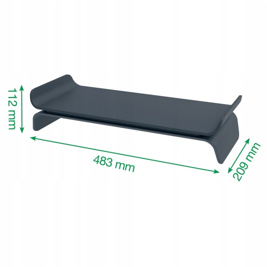 Regulowana podstawka pod monitor posiada 2 ustawienia wysokości i bezpiecznie utrzymuje monitory o przekątnej do 27" . Pod podstawką znajduje sie dodatkowa przestrzen na schowanie klawiatury lub innych przedmiotów codziennego uzytku, która ulatwia utrzymanie porządku na biurku.