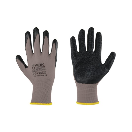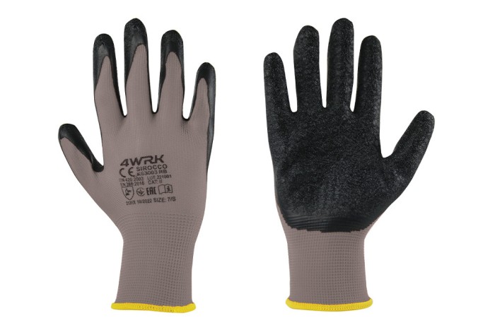 Rękawice robocze SIROCCO to niezastąpiony wybór do prac ogólnych i mechanicznych. Wykonane z trwałej dzianiny poliestrowej w kolorze szarym, powlekane są warstwą porowatego lateksu w kolorze czarnym, co zapewnia doskonałą przyczepność i odporność na ścieranie, rozdzieranie oraz przekłucia. Rękawice są elastyczne i dobrze dopasowują się do dłoni, gwarantując komfort i pewny chwyt.