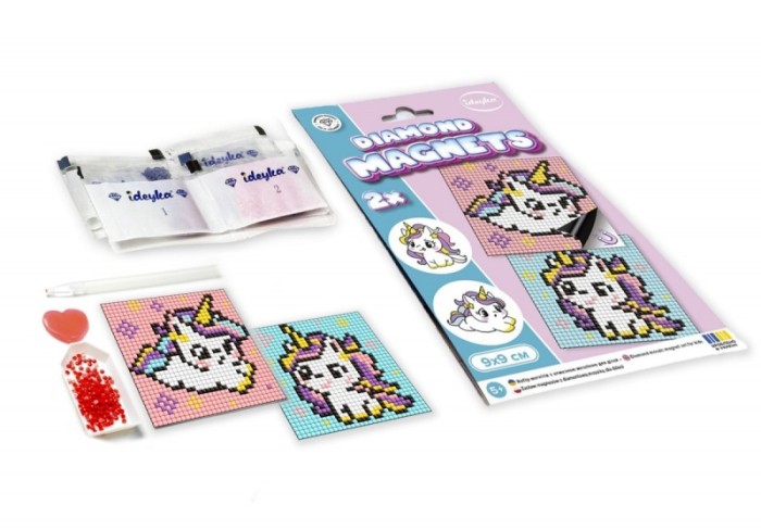 Diamentowa mozaika na magnesie IDEYKA, 9x9 cm, kids, szary puszysty, 2 szt.