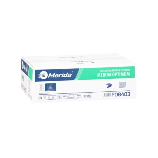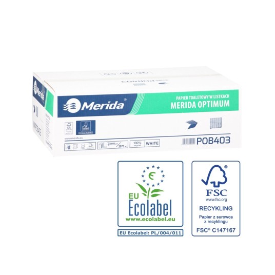 Papier toaletowy w listkach MERIDA OPTIMUM, biały, dwuwarstwowy, karton 9000 szt., ECOLABEL