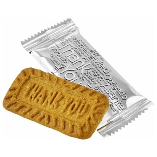 RIOBA Thank You Ciasteczka karmelowe 1,2 kg to indywidualnie pakowane ciasteczka o karmelowym smaku. Stanowią praktyczny i estetyczny poczęstunek do biurowej recepcji, sal konferencyjnych i stref kawowych.